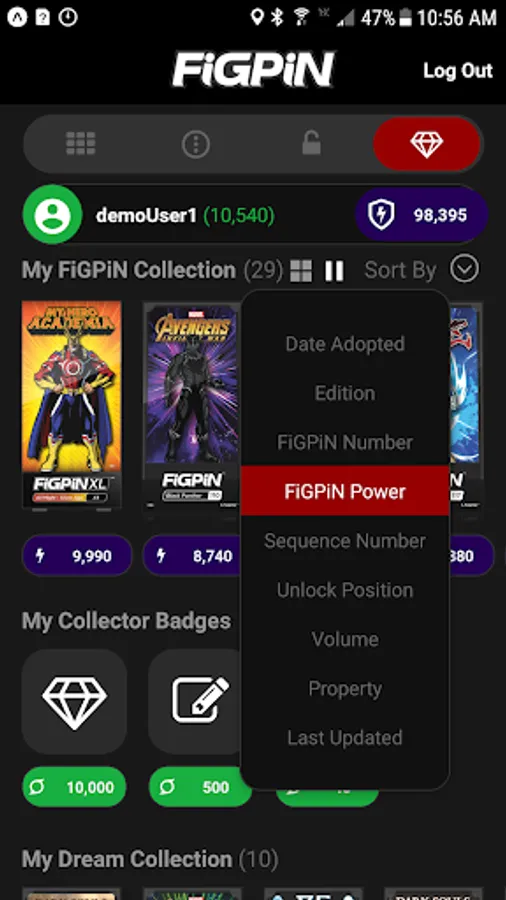 You can also browse the entire FiGPiN Catalog and build your ultimate Dream Collection. Be the first to see new FiGPiNs before they are released. Gain access to rare App Exclusive pins.