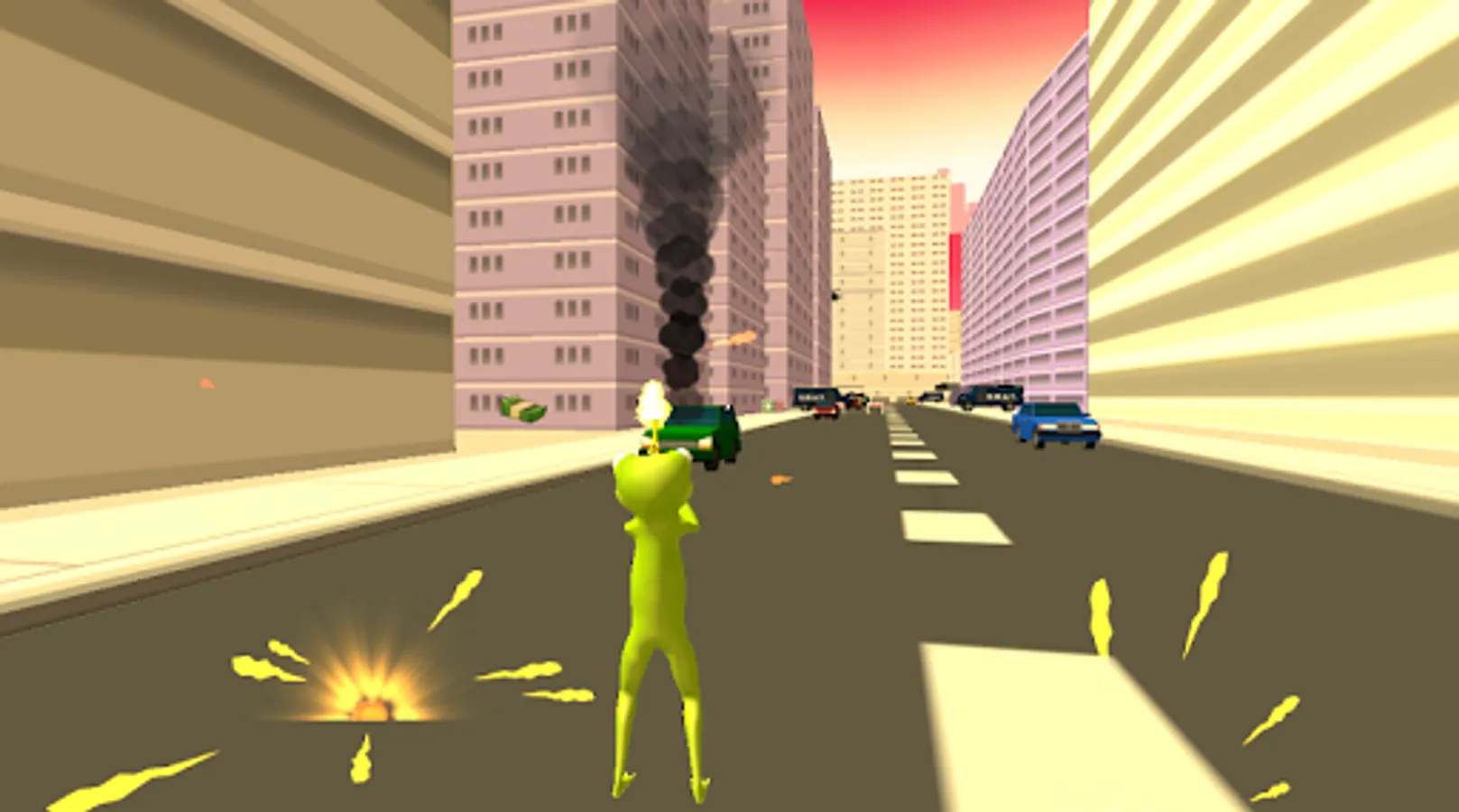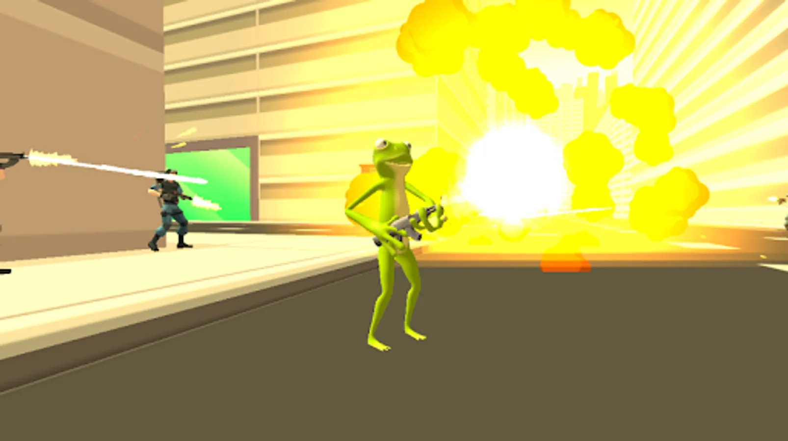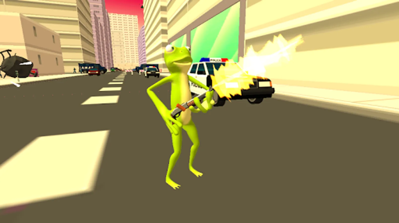 In Frog Rope Gangster Vegas you will be a gangster frog in a big city. You will be able to use rope to perform some amazing tricks. For example you can swing to all the skyscrapers with a rope from the frog hand. Isn't that amazing? Also you can drive all the vehicles including the helicopter and jets! The frog can use a lot of weapons even rpg's and jet packs.