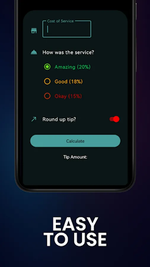 • Rounding: The tip percentage updates in real time when you round the total amount or per person.