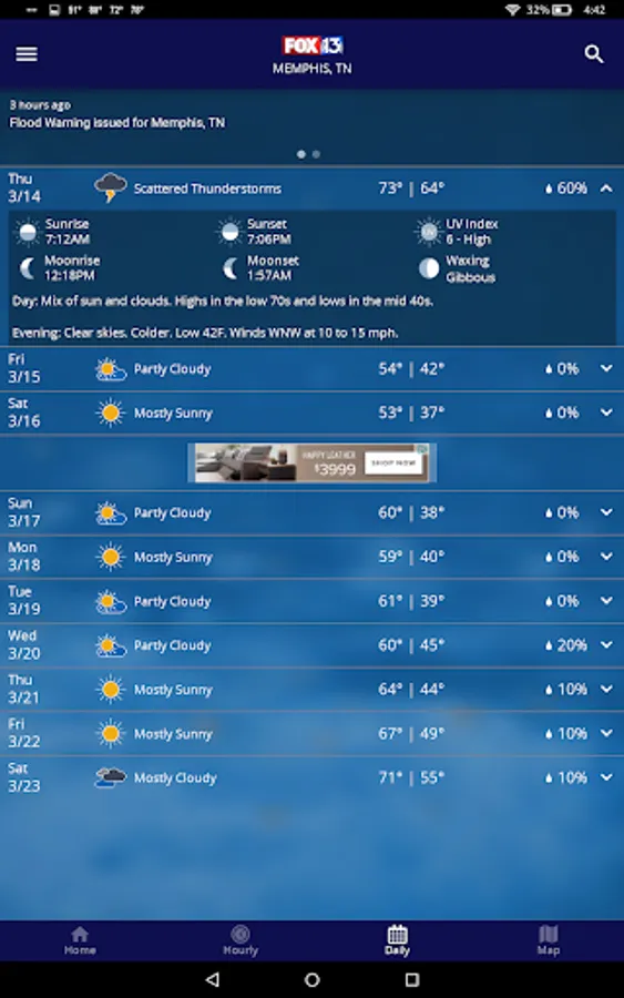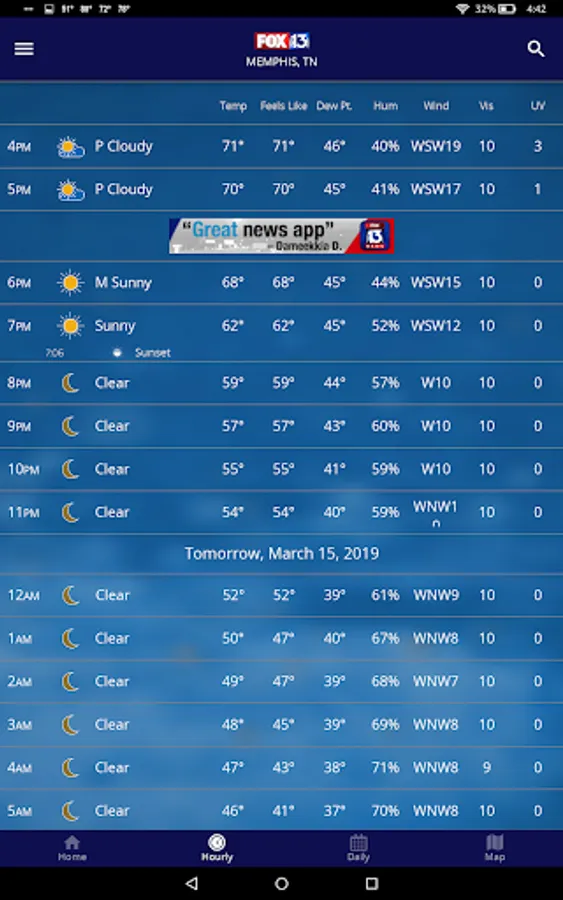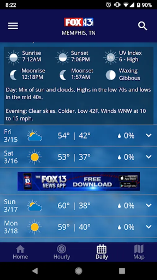 Developed specifically for Tennessee, Arkansas and Mississippi, the FOX13 Weather App provides the most accurate local forecasts, to keep you and your family safe. The Mid-South’s most powerful local weather app includes: