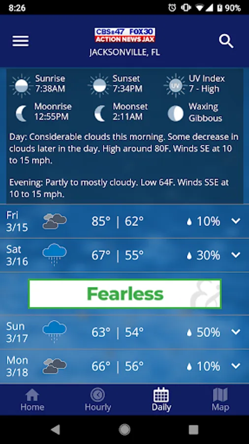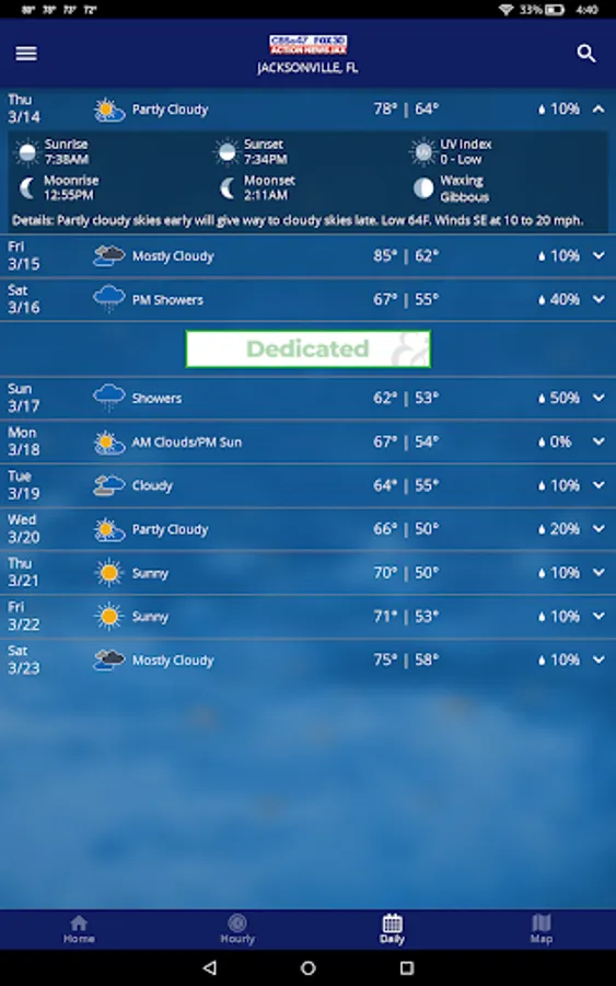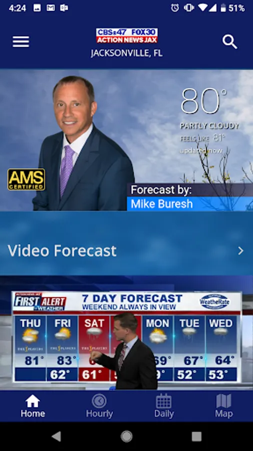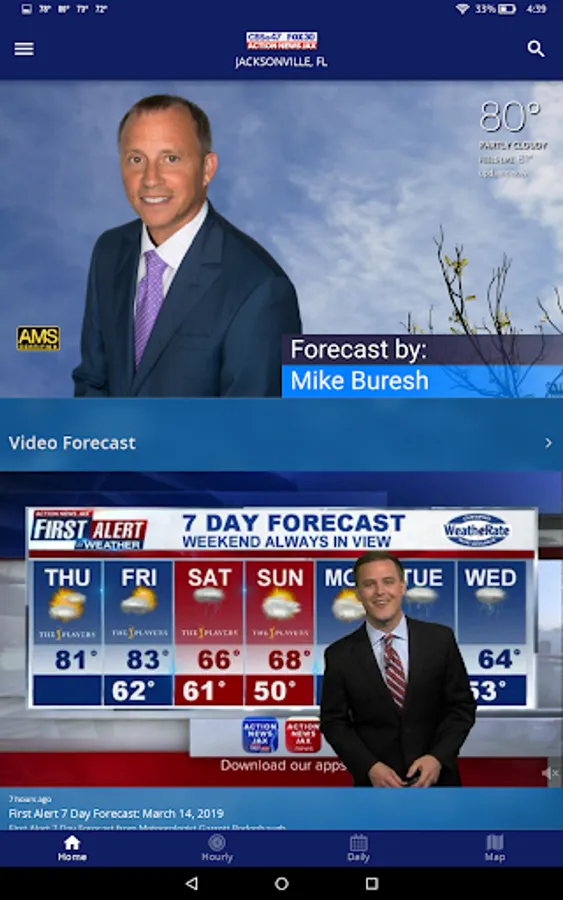 Get the most accurate Jacksonville-area forecast in town with the First Alert Weather App from Action News Jax - WJAX/WFOX. The app features the forecast from your neighborhood, live radar, breaking weather alerts, live streaming video from Chief Meteorologist Mike Buresh and the First Alert weather team.