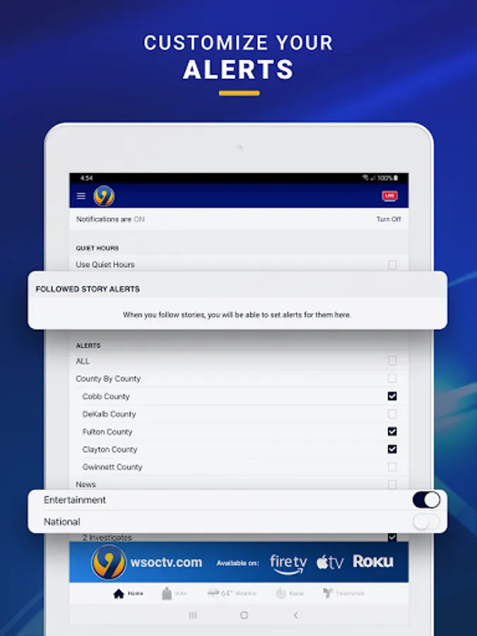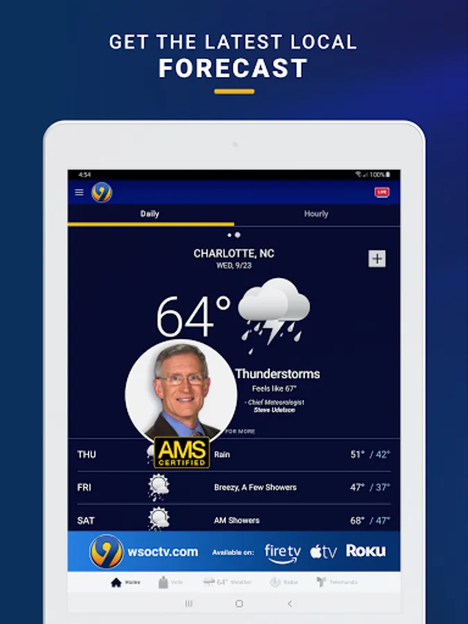 - Minute-by-minute weather using WSOC-TV Channel 9’s StormTracker Doppler Radar and 5-day Forecast so you know how the weather will impact you.
