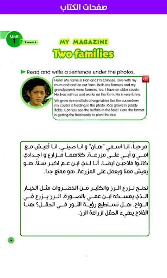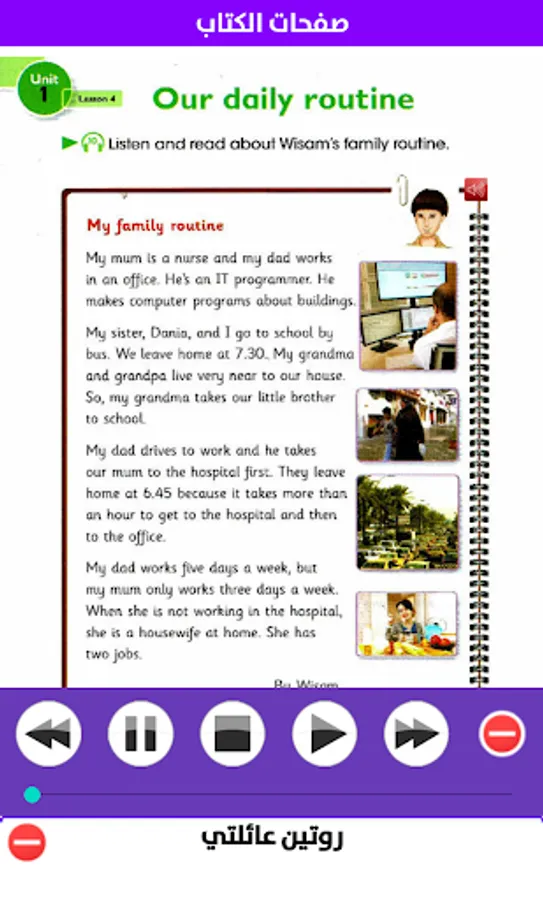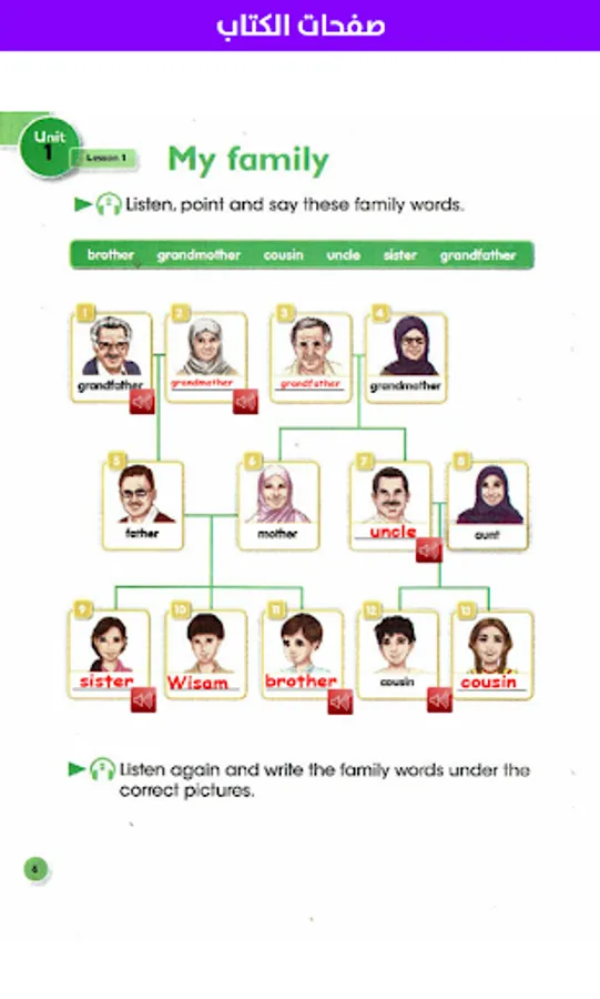 An application that includes the correct pronunciation of words and dialogues for the sixth grade