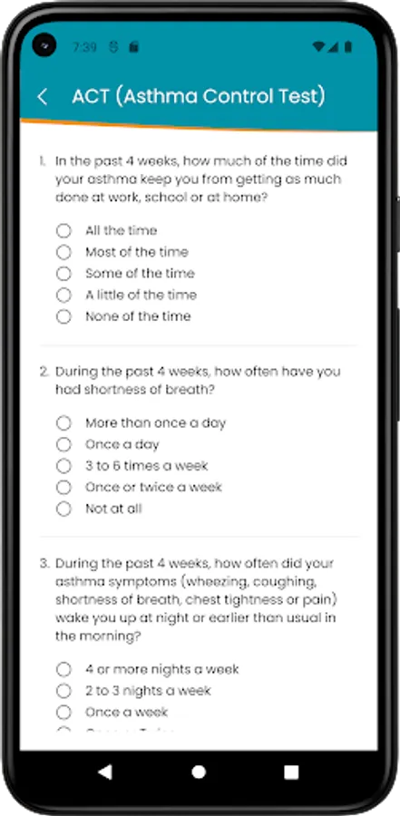 The officially licensed Asthma Control Test (ACT) is available in the App according to the user. Additionally, the in-app log makes it easy for users to track their medications, symptoms, and activities for future reference.