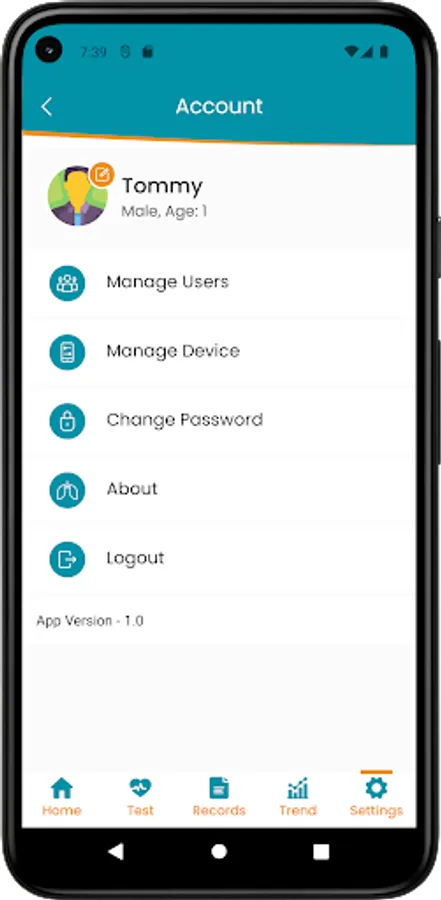 Generate test reports and trend graphs in the palm of your hand. All of a user’s test records are automatically uploaded and saved in the cloud. This allows a user to better manage Asthma conditions over time by providing the means to better track and identify trends.