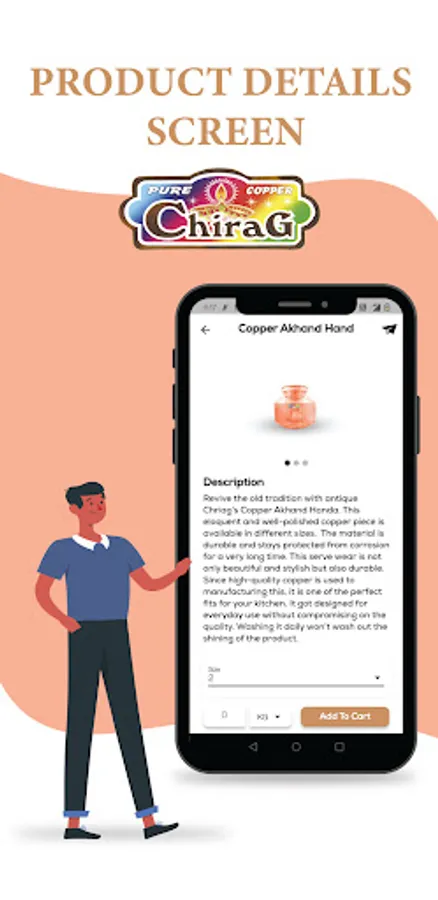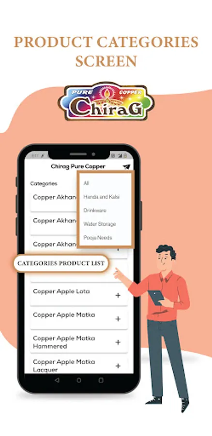 Chirag Pure Copper is a catalog application for a personal shop that allows you to access details about the products we sell. With this app, you can browse through our wide range of pure copper products. You have the option to select the appropriate size, weight, and capacity of the product you desire, and save it in a wish list. Once you have finished browsing, you can easily connect with the seller through WhatsApp for further details.