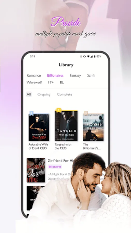 Enjoy an Instant reading of massive novels, which includes genres like Modern, Romance, Time-travel series, Fantasy, Supernatural, Martial Arts, etc. The Elf provides a variety of book resources, which are clearly classified and convenient for users to find quickly and read.