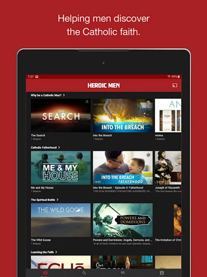 HEROIC MEN is a streaming platform especially designed for men by integrating state-of-the-art technology, and best-in-class Catholic content (English and Spanish) to provide unprecedented access to the truth, beauty, and goodness of the Catholic Faith.