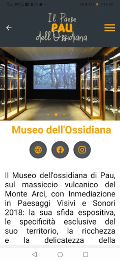 The village of Pau lies 300 meters high on the western side of Monte Arci, the largest Sardinian obsidian deposit, which frames it with its woods and abruptly interrupts a scenography made up of soft hills, including on Ventosu. Pau is a small town of just over 300 inhabitants in the upper Marmilla, a fertile land rich in waterways, where cereals, legumes, orchards and vineyards are grown. The origin is perhaps Roman, as evidenced by the findings of roof tiles, vases, coins and traces of ancient buildings in various locations, including Sa Telluri. The name itself derives from the Latin pagus (village). Three nuraghi date back to prehistoric times, one single tower, su Castiu or Spadua, and two complexes, in Arruinas and Punta su Nuraxi. Today the village is divided into a network of streets overlooked by ancient stone houses. In the center, the parish church of San Giorgio Martire, in the countryside the church of Santa Prisca Martire, celebrated at the beginning of September.