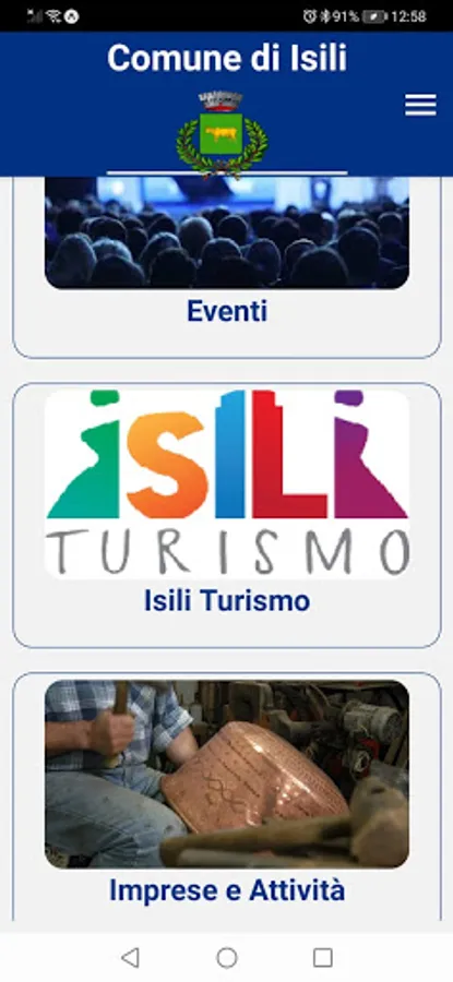 Application of the Municipality of Isili containing information of character: Tourism, Cultural History, Museums, Library, Municipal Services, Construction, Environment, Urban Planning, Events etc.
