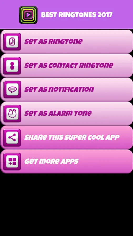 Manage all the sounds for ringing tones! Browse through the latest notification sounds, go on message ringtone setter and select the short tone for notifications. Pick your favorite call ringtone and callback ringtone and set it as your “incoming call theme”! Best ringtones and notification apps, tones for text messages, chat sounds, sounds effects, will entertain you for sure! From super funny ringtones, business ringtones, scary ringtones, hilarious tones, dj effects ringtones, techno, trap, funky ringtones to classical ringtones, piano, guitar ringtones and more, the choice is big! Install free Best Ringtones 2017 and have “custom ringtones” for mobile and tablet! Change your ringtone and sounds for notifications and assign them to specific callers. Control what you hear! When you get a call, snap a pic, or type a message on your phone, play the best sound ringtones!