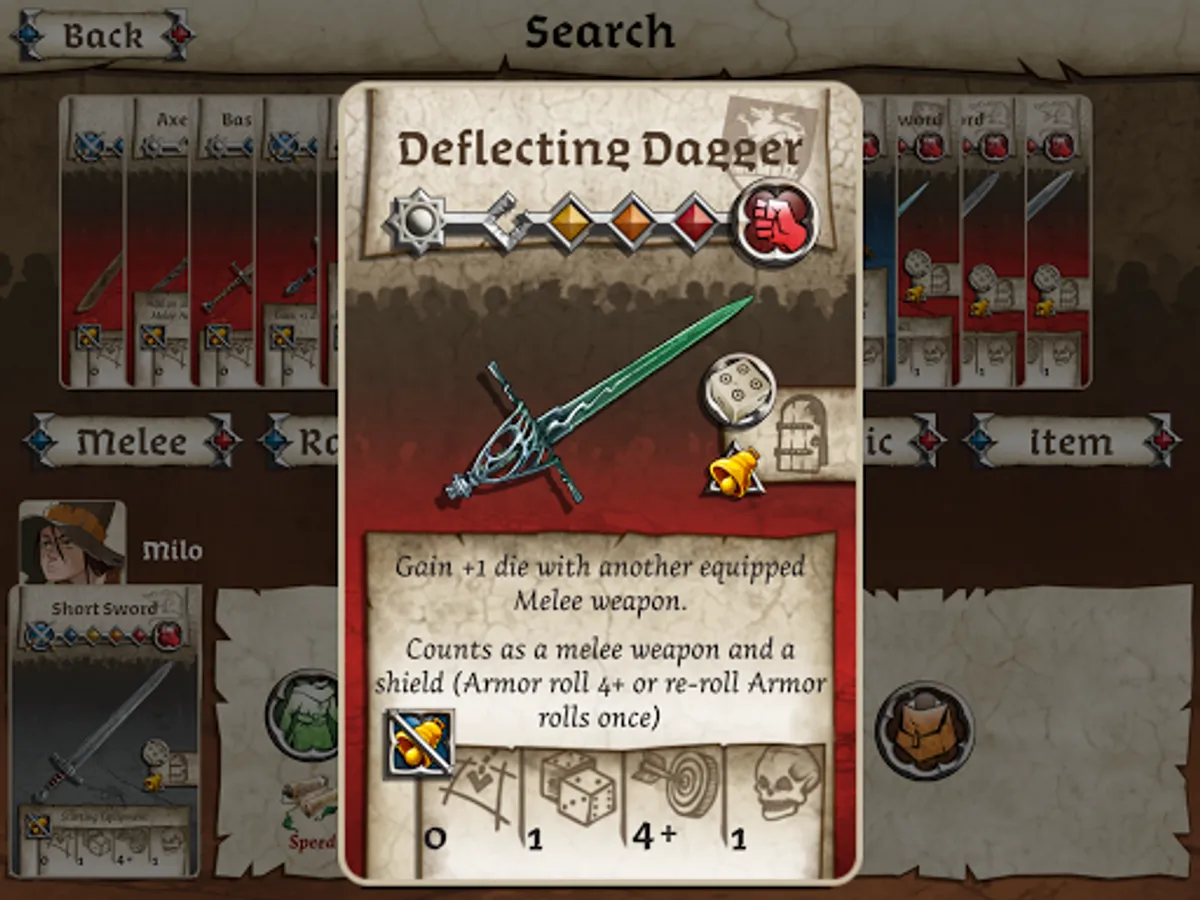 • Roll virtual dice for any of your equipped weapons, automatically calculating successful hits according to any combat skills you may have (and with sound effects to boot!)