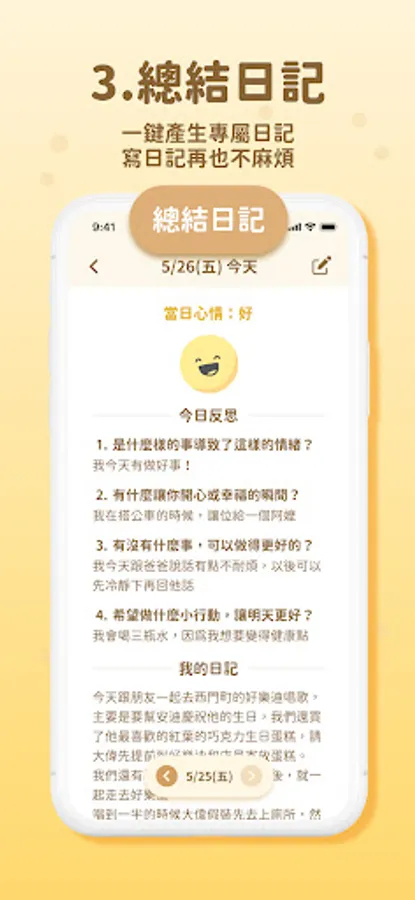 Chatting is like writing a diary, just talk easily, and your AI friend will summarize the conversation record and help you generate an exclusive diary.