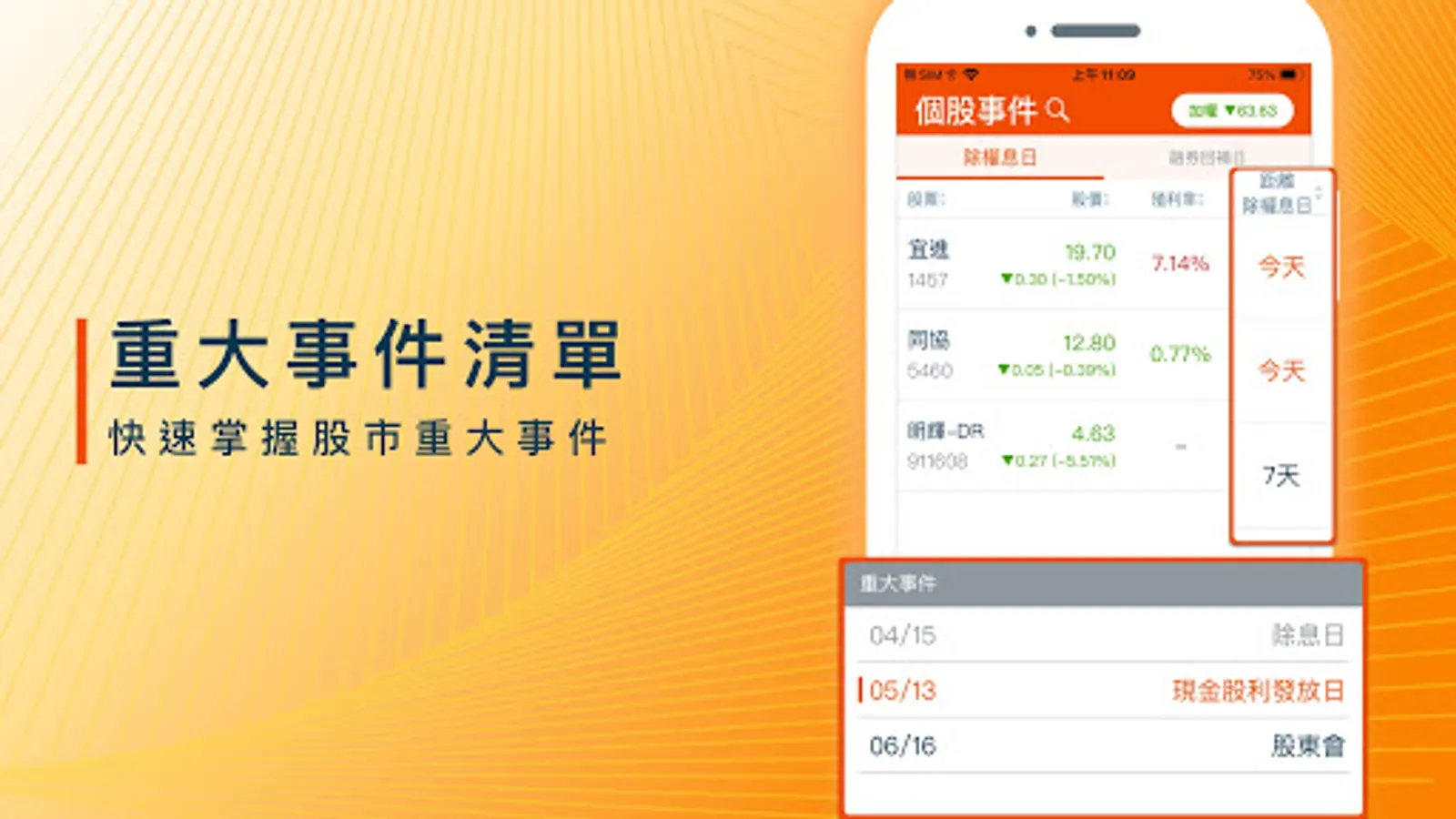 Integrate the stocks that are about to be ex-divided and short-listed stocks recently, allowing you to quickly grasp the company's latest events. With the market analysis function, find out the possibility of trading profit in major events.