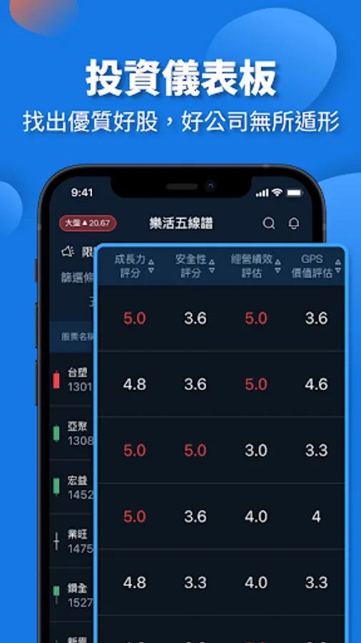 Screen out good stocks with excellent constitutions from indicators such as "growth power", "safety", "business performance", "GPS"... and so on.