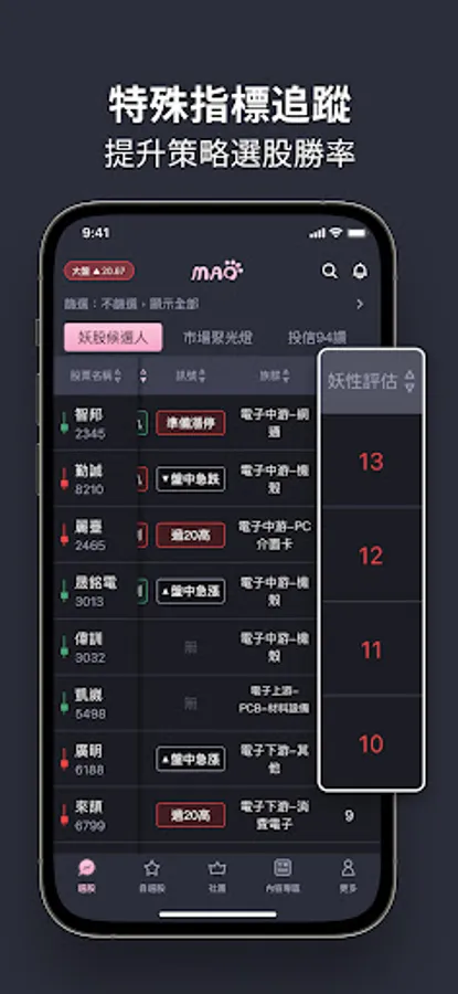 Mao Mao Dang Chong’s daily selection is divided into five different types of stock selection lists: "monster stock candidates, market spotlights, 94 likes, ready or not, and Mao-style every other day", which are automatically refreshed after the market every day and can be tracked Different special indicators to increase the winning rate.