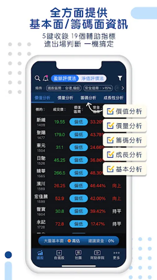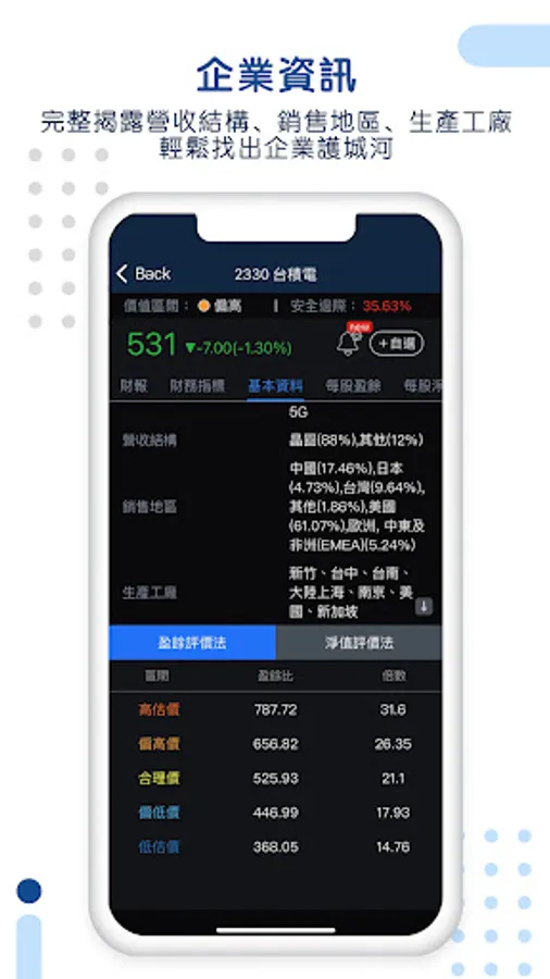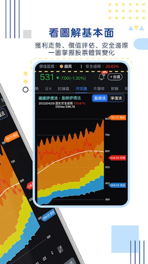 The app will provide the recommended evaluation method for each stock, and provide six value ranges (warning, overvalued, overvalued, reasonable, undervalued, and undervalued) so that you can quickly understand its stock value!