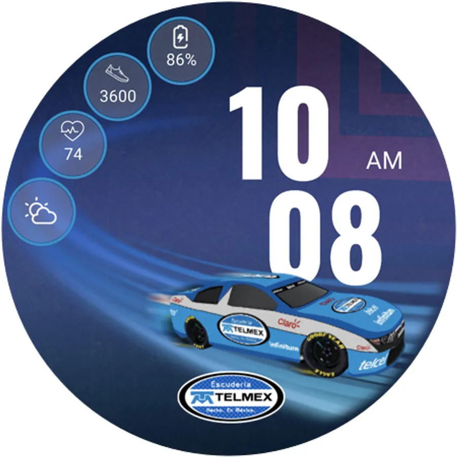 Add this racing face to your watch, with a light track that guides our car to victory.