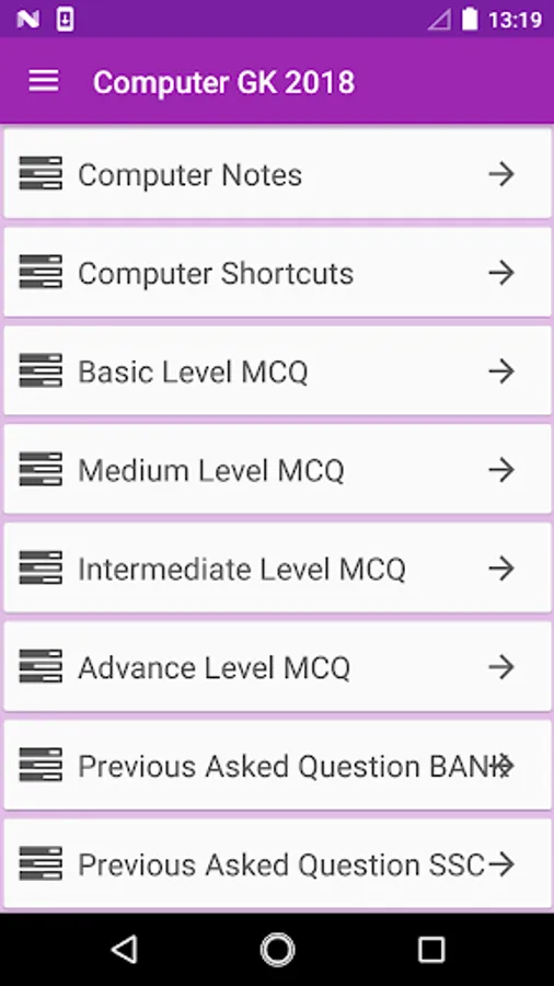 This app provides you more than 1000 mcq with answer and important computer notes that are asked in bank and other goverment exam.