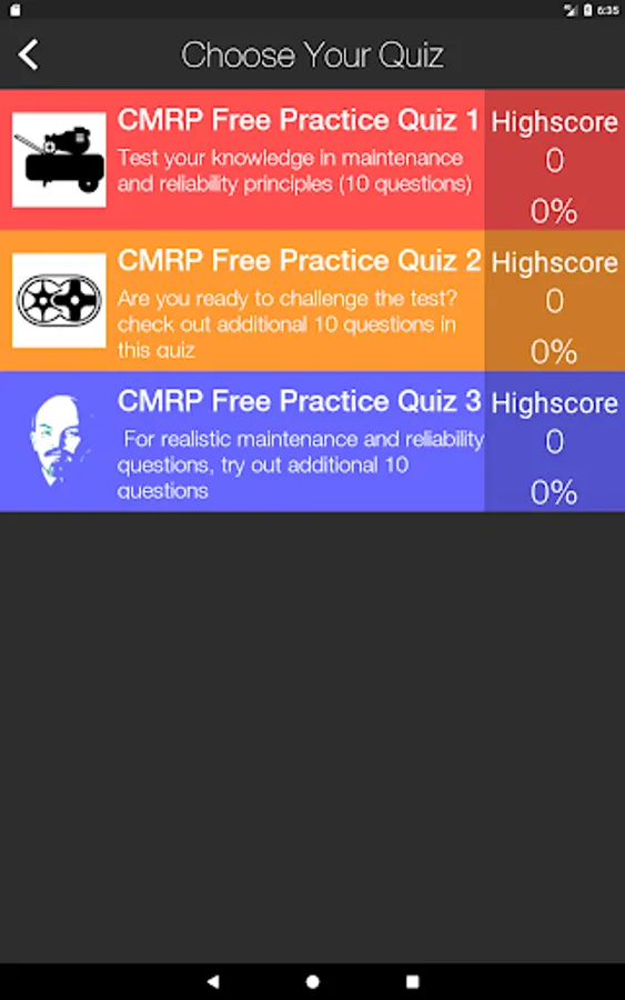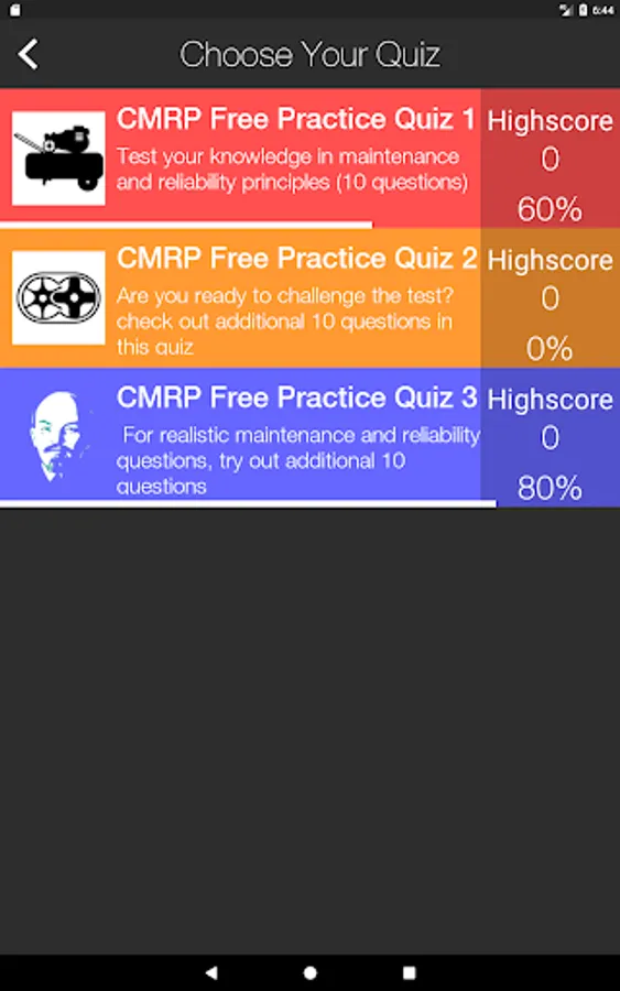 Use this app to practice for CMRP exams. This comprises of 130 questions and answers. Take short quizzes while you are waiting at the bus stop, on the bus, in the train or at the coffee shop. It is made simple for you to study whenever and wherever you have access to your mobile device.
