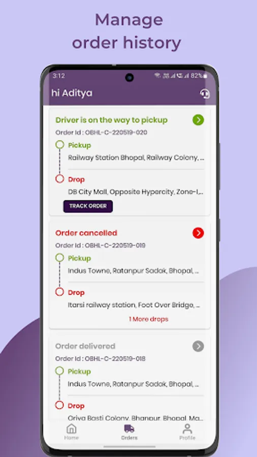 1. Order section will show all the ongoing, completed and scheduled, and canceled orders.