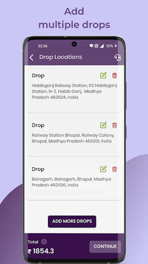 - Multiple Drop – Customer and Business can provide up to five different drops addresses for delivery