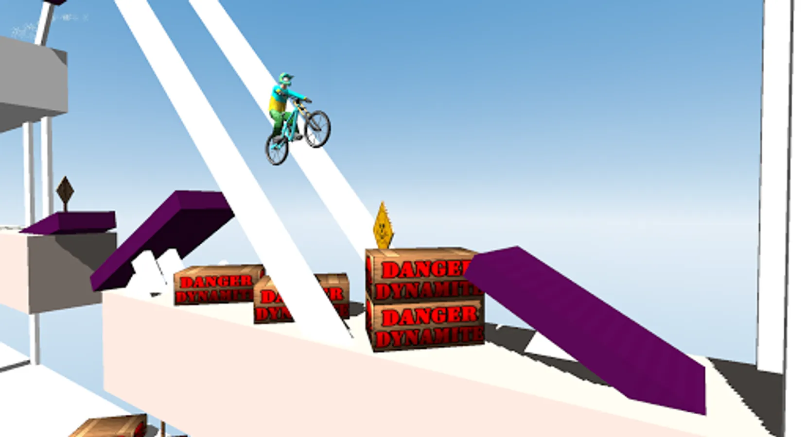 Get ready to ride your bike and jump over all dynamite crates to reach the finish line!!