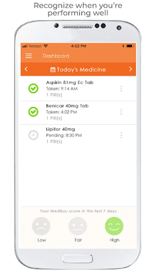 The Beacon of Care™. Medikyu tracks doses and reminds you when it’s time to take your medication, supplements, or vitamins. Put yourself at ease by staying on top of not only your own, but your loved ones’ doses too. Medikyu app reminds family members or friends when to take their medicine, and lets you know if they miss their dose.