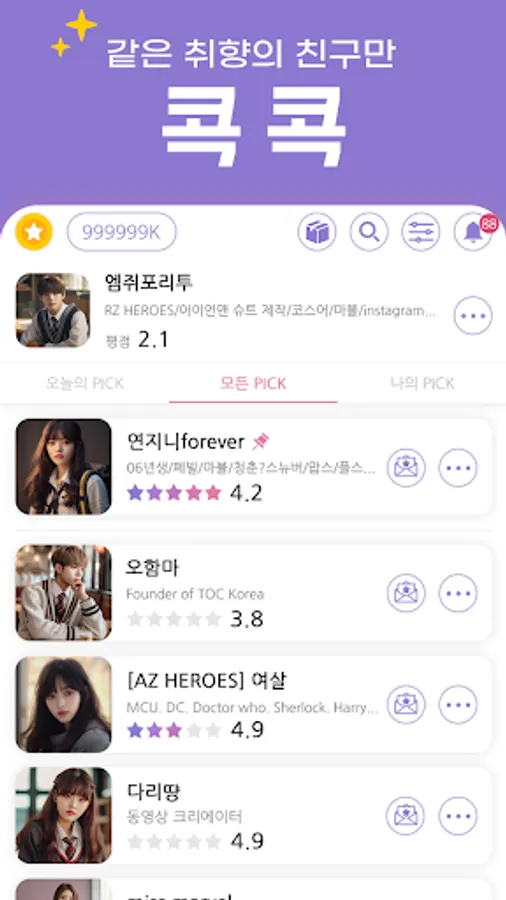 ✔︎ Members who exceed a certain period of inactivity will not appear on Today's Pick.