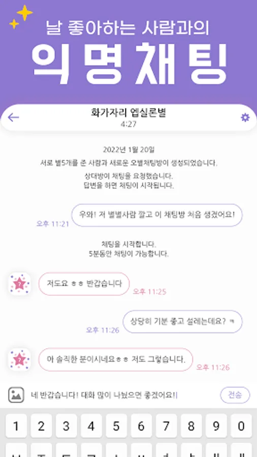 ✔︎If you give each other 5 stars, 'Obyeol Chat' will open and you can chat anonymously.