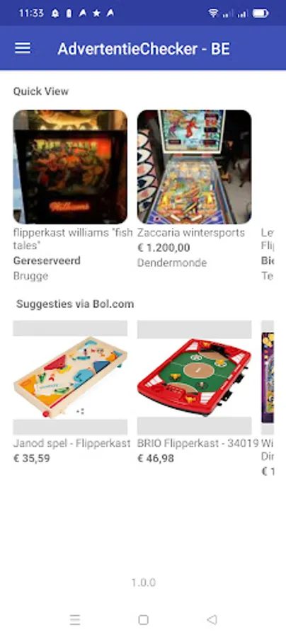 Save a lot of time by no longer looking for second-hand stuff yourself with the Advert Checker - BE app! And that too without having to have an account. Create a search, activate the search and receive a notification as soon as new advertisements are added that match your search. You will also receive suggestions via Bol.com based on your search. Read the manual below carefully for all functionality!!! This app has no relationship with second-hand, but is an official partner of Bol.com.