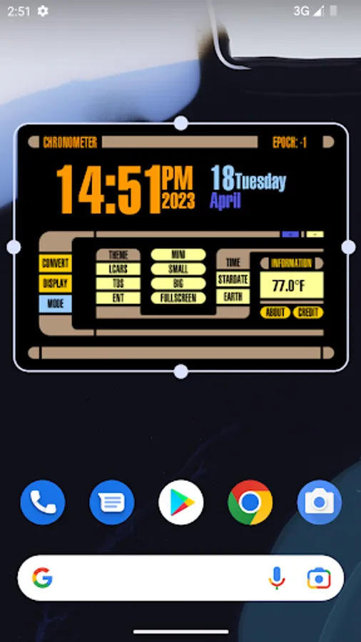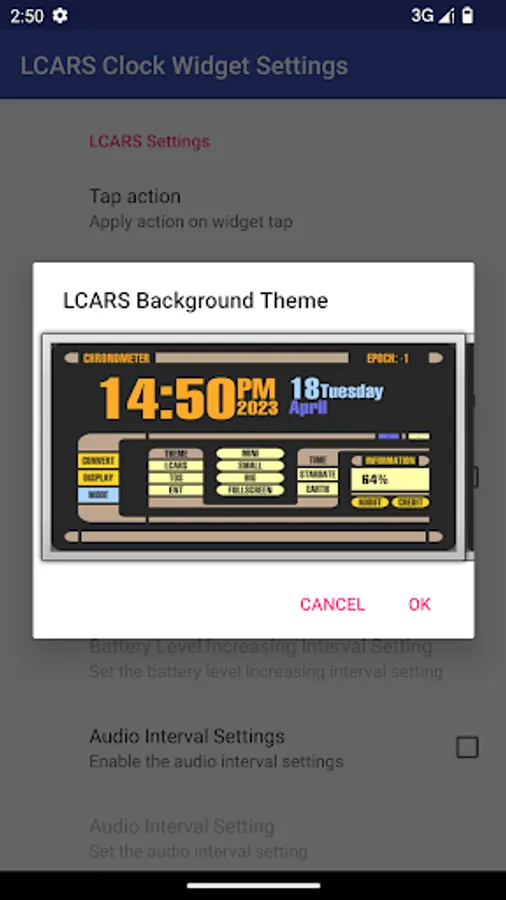 The Star Trek LCARS Clock Widgets is a digital clock widget best viewed as 4x2 or 5x3. You can choose from 6 different LCARS background themes. Furthermore, you can adjust audio and battery settings. Finally, the date format and time format can be changed as well. Depending on your device, the widget sizes can differ!