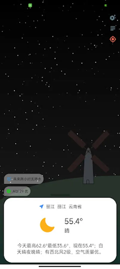 It supports weather data query of millions of cities around the world. Even if you are drifting in the sea one day, you can take out your mobile phone to check the sea temperature and wave flow.