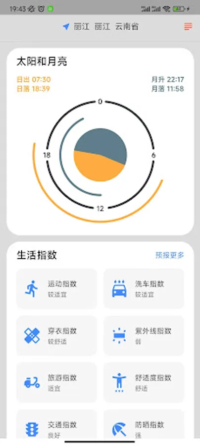 Real-time weather, up to 30-day forecast and hourly forecast, minute-level precipitation, extreme weather warning, real-time air quality and forecast, historical weather, typhoon, tide, sunrise and sunset, moonrise and moonset, moon phase, etc.. .