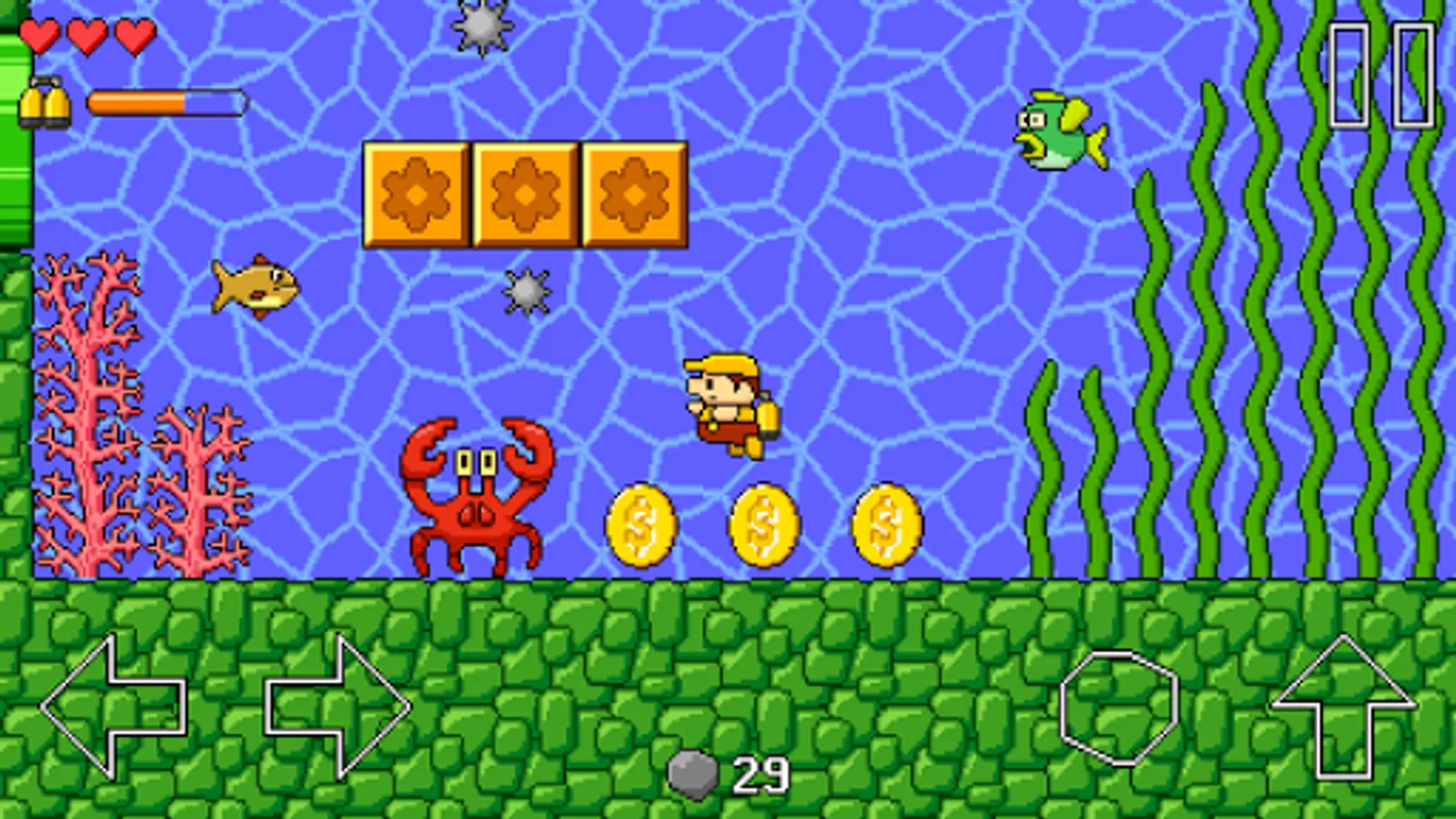 The game control is simple - only 4 buttons: left, right, up (jump) and down (action).