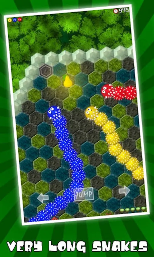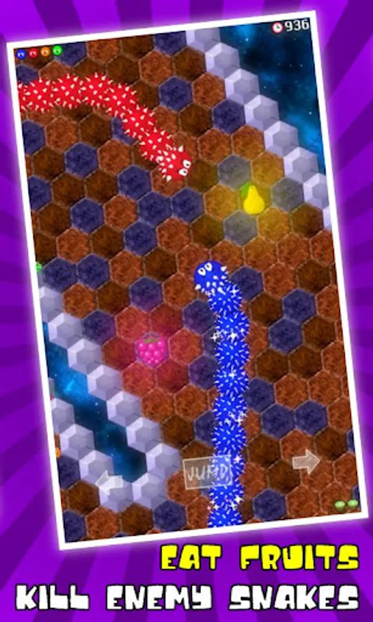You control one snake. Other snakes have artificial intelligence. Snakes can move to any direction!