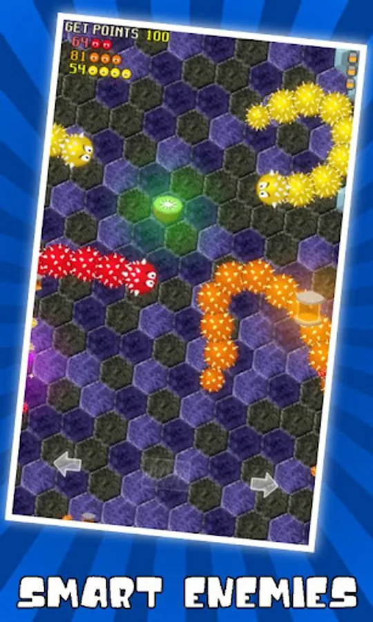 Your snake is good. Enemy serpent is angry. Snakes like caterpillars.