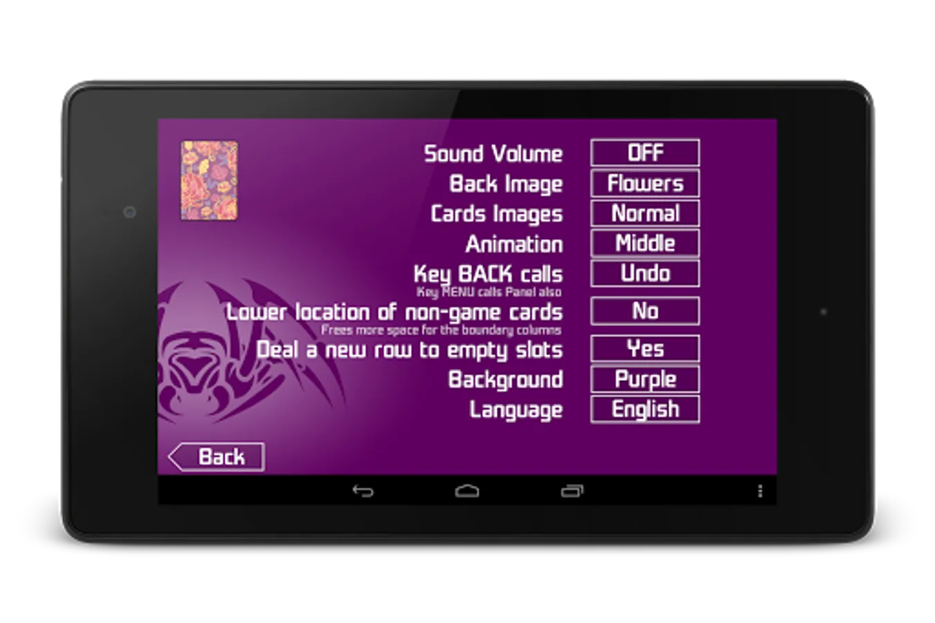 * Customizable back cards and background color;