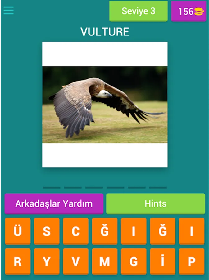 Applications are alphabetically level in Turkish. You can get help when you do not know and may want hint virtual in-game gold. With each correct answer you will increase your virtual gold.
