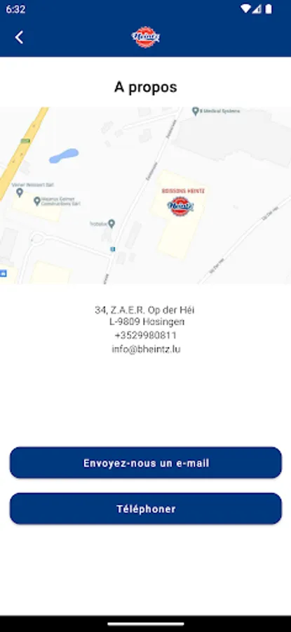 La société Boissons Heintz est situé au Z.A.E.R. (zone d'activité économique régional) à Hosingen.