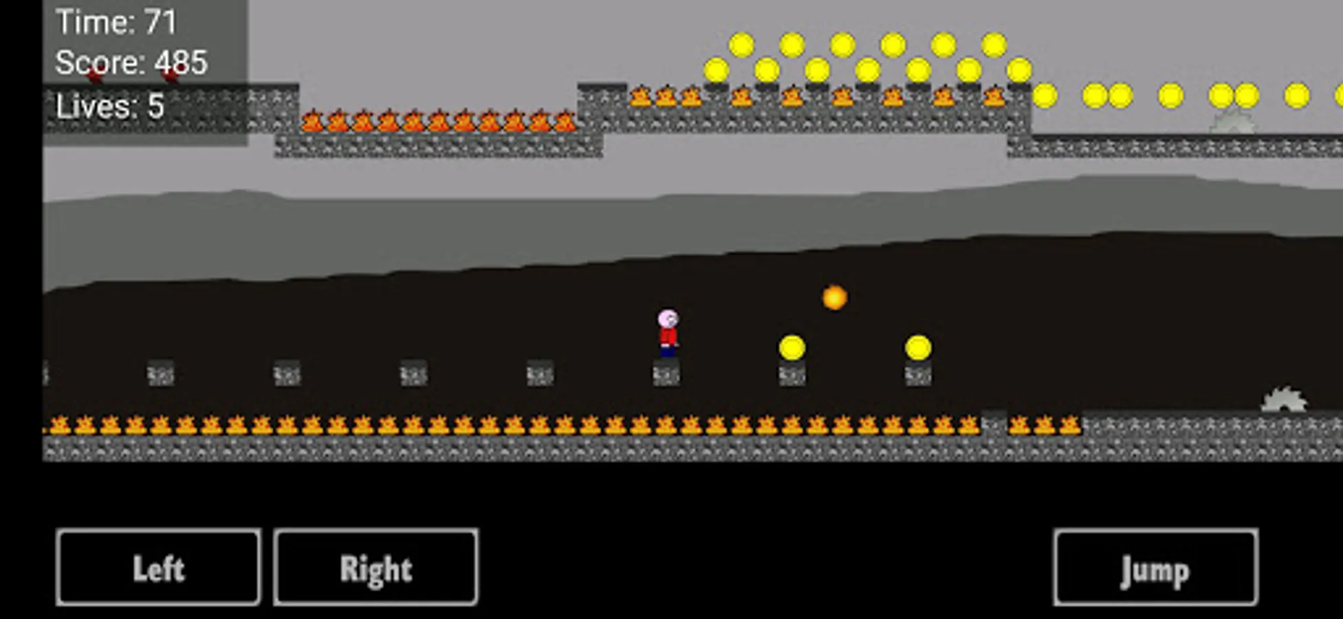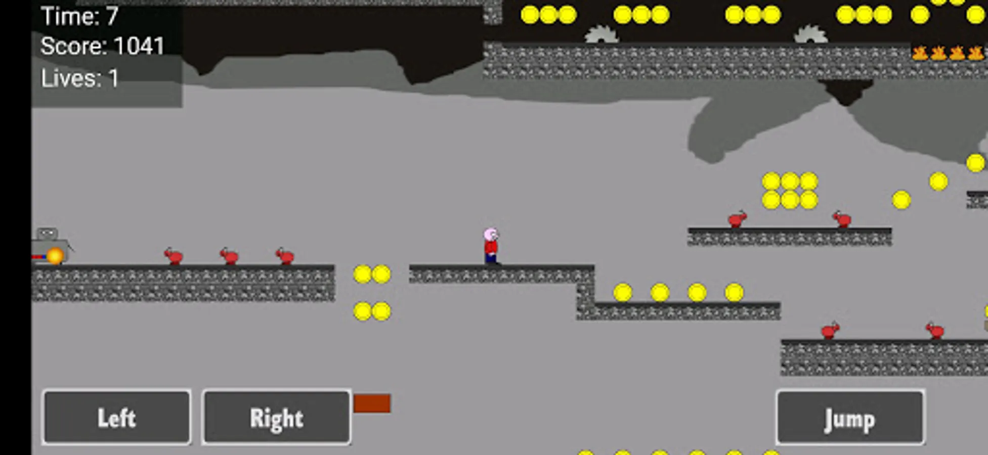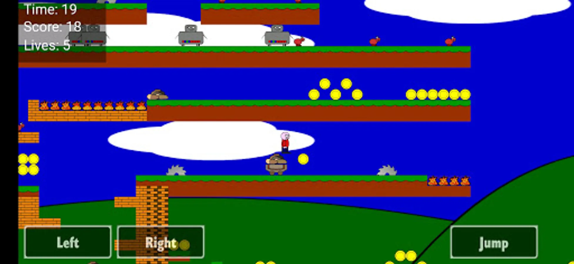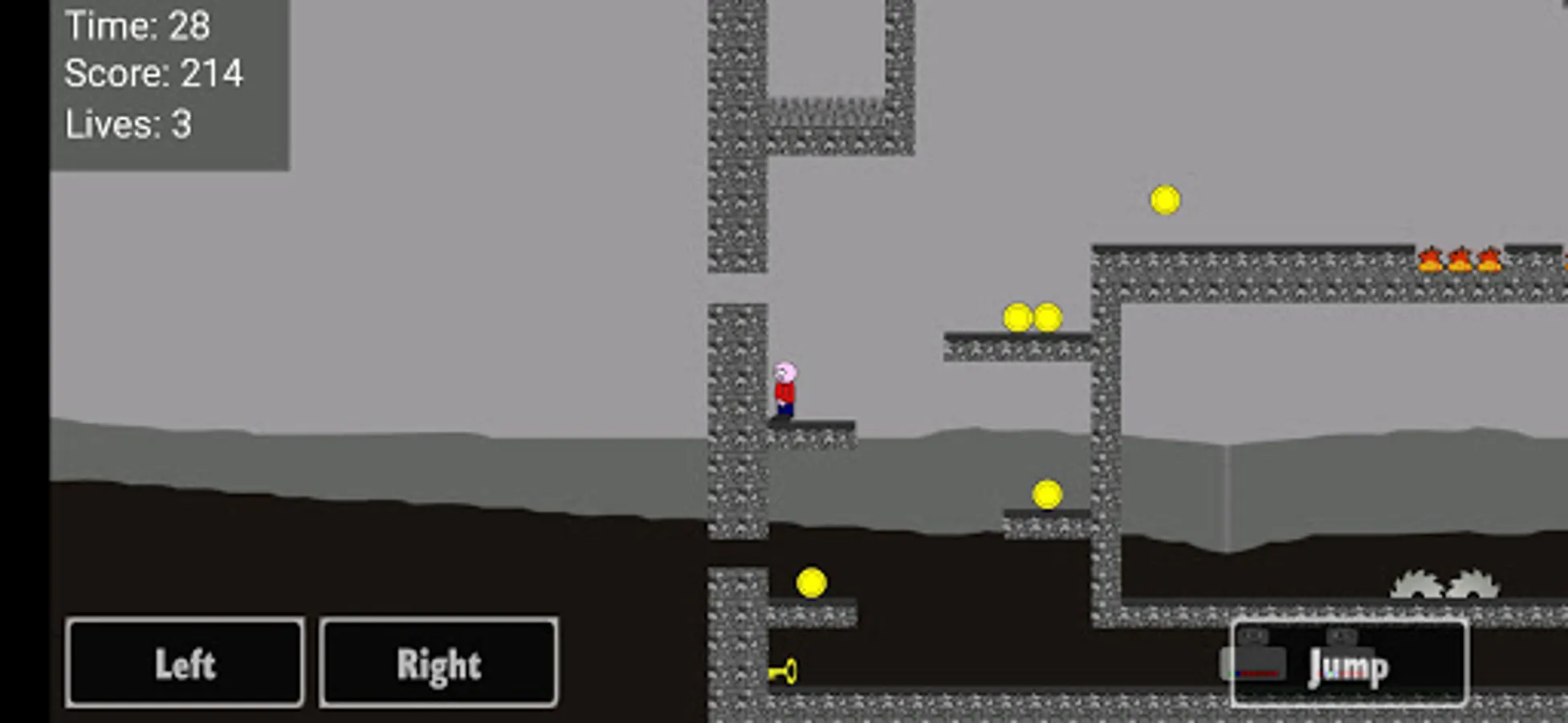 A simple yet challenging side scrolling platform game. Help Angry bloke get through 5 challenging levels by finding keys to unlock doors to the next level.