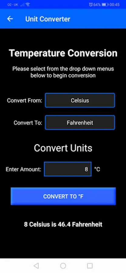 A simple, easy to use unit conversion app which can convert, temperature, mass, length, area, speed, time, and volume.