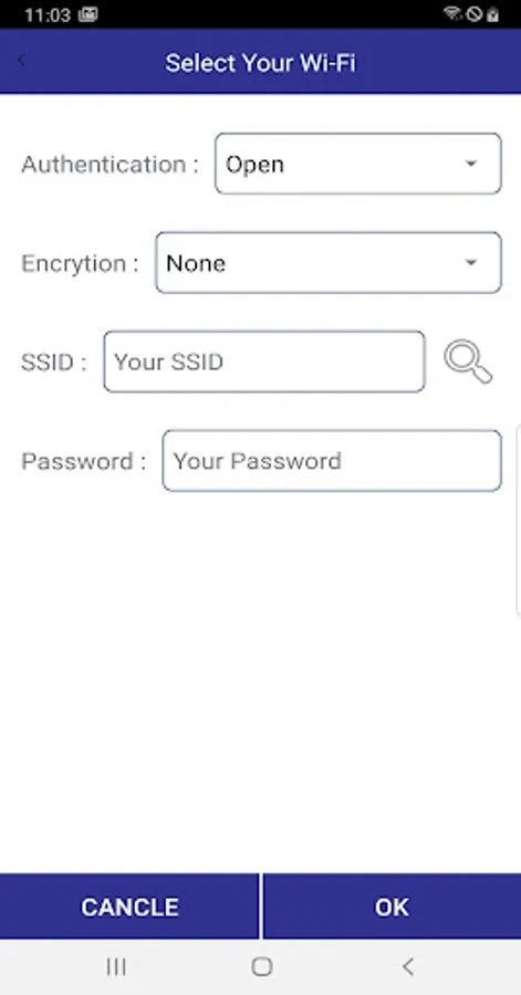 4) Tap the magnifying glass next to the SSID to select the WI-FI address you want to register.