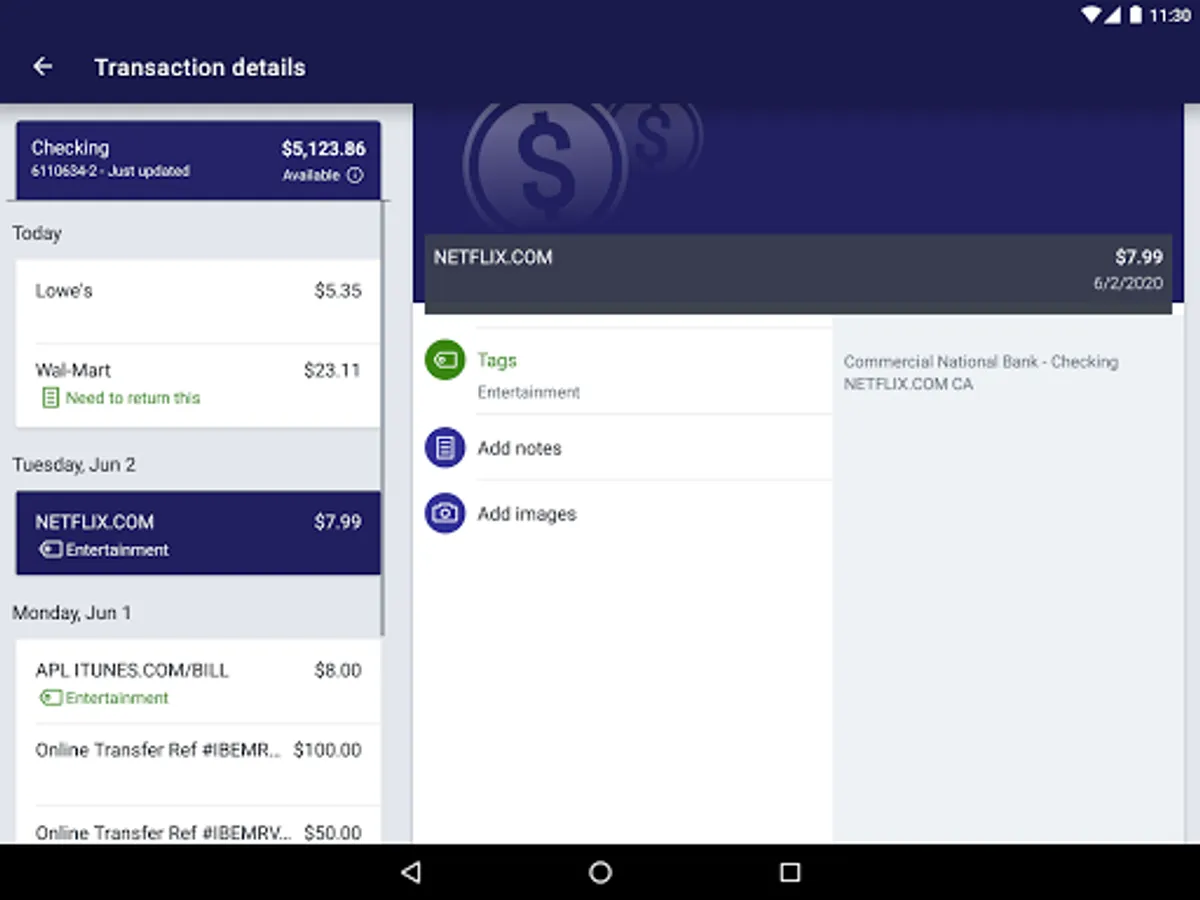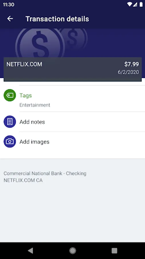 Keep your transactions organized by allowing you to add tags, notes and photos of receipts and checks.