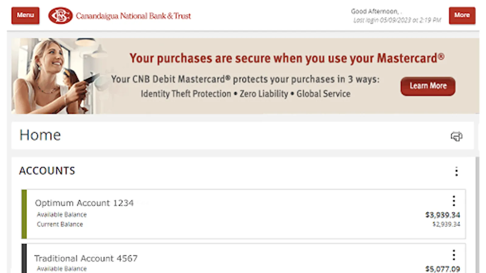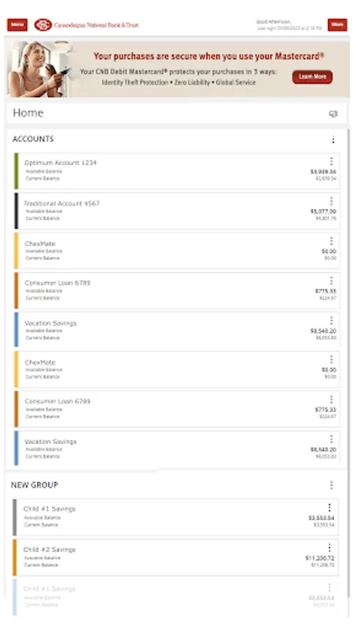 Canandaigua National Bank & Trust Mobile Banking provides customers access to the CNB Online Banking Center features, optimized for convenient and secure access via their mobile device. Check Balances on the Account Overview, View Account History and Online Activity, Transfer Funds or make Bill Payment, Make Mobile Deposits, conduct Commercial Payments and View Messages and Alerts.