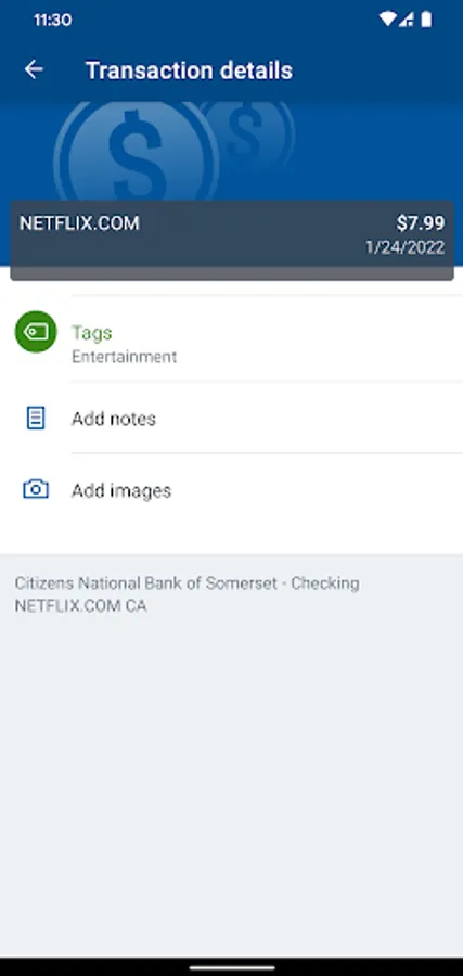-Keep your transactions organized by allowing you to add tags, notes and photos of receipts and checks.