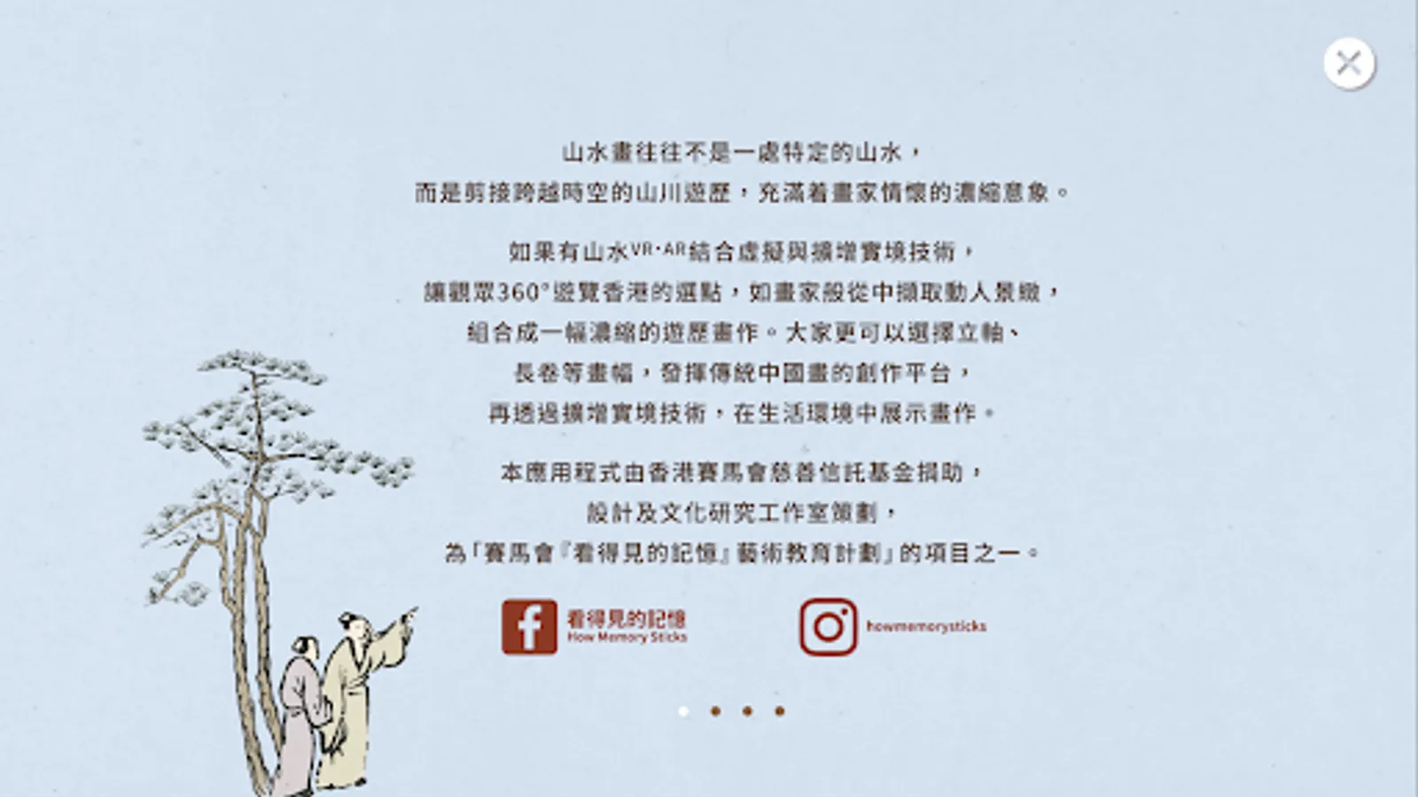 This app is donated by the Hong Kong Jockey Club Charities Trust Fund and planned by the design and cultural research studio. It is one of the projects of the "Jockey Club "Visible Memory" Art Education Project".