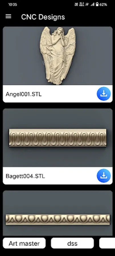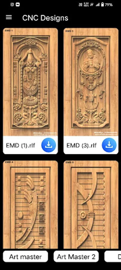 In this app, you can download cnc designs for Artcam, Aspire, Fusion 360, and TurboCNC.easily we have a large collection of design data in .STL, ART, .RLF in formats and Designs for Corners central doors, etc.