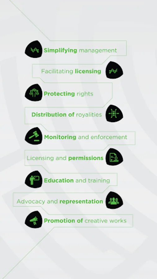 Copyright and Neighboring Rights Collective Management (CNCM) is an organization entrusted with the management of copyright and neighboring rights on behalf of creators such as authors, musicians, composers, performers, and more. CNCM offers a comprehensive and efficient solution for rights management. With streamlined rights registration, robust monitoring, secure licensing, and royalty collection, transparent reporting, and a global network. Our product empowers creators to protect their work, maximize revenues, and focus on what they do best – creating.