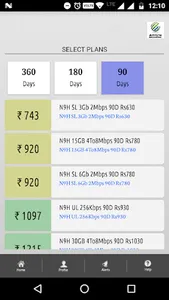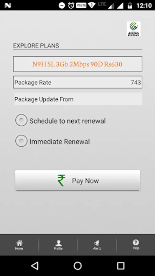 A subscriber can upgrade existing broadband package by clicking on the Upgrade Package button on the home screen. Following options are available